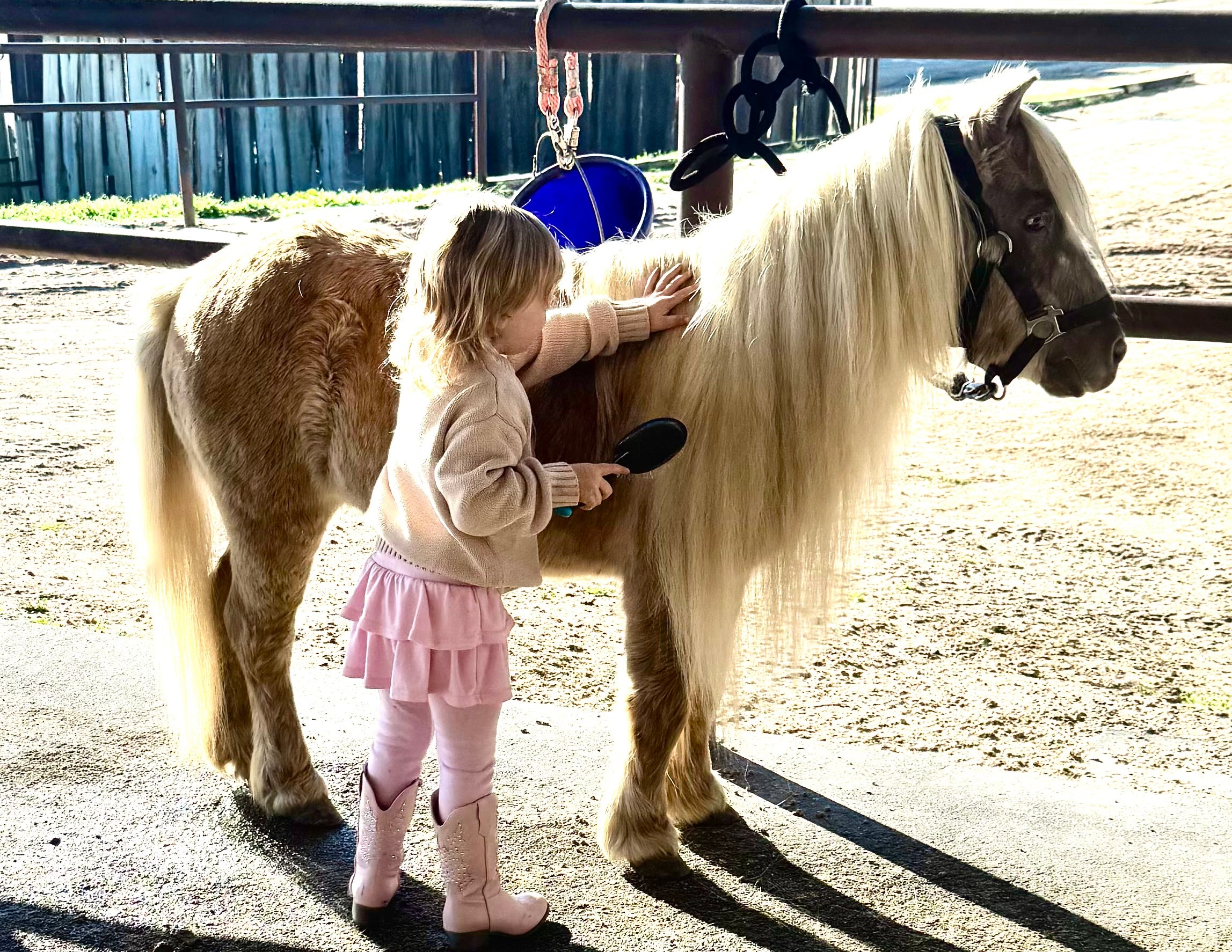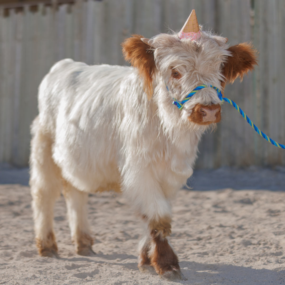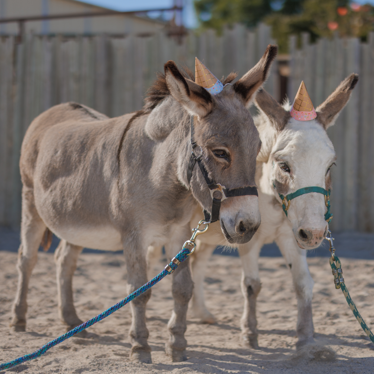 Meet Pearl, our white mini donkey who has spent the last 15 years living her best retired-pasture-princess life-grazing, napping, and giving exactly zero apologies for her delightful little streak of sass. Now in her early 20s, Pearl has decided she’s ready for a comeback tour! She’s joining our pony parties as the resident “celebrity donkey,” offering just enough affection to win your heart…and just enough attitude to keep you humble. With her wise eyes, fluffy ears, and perfectly unimpressed expressions, Pearl is guaranteed to steal every photo-and maybe your snacks if you’re not paying attention.